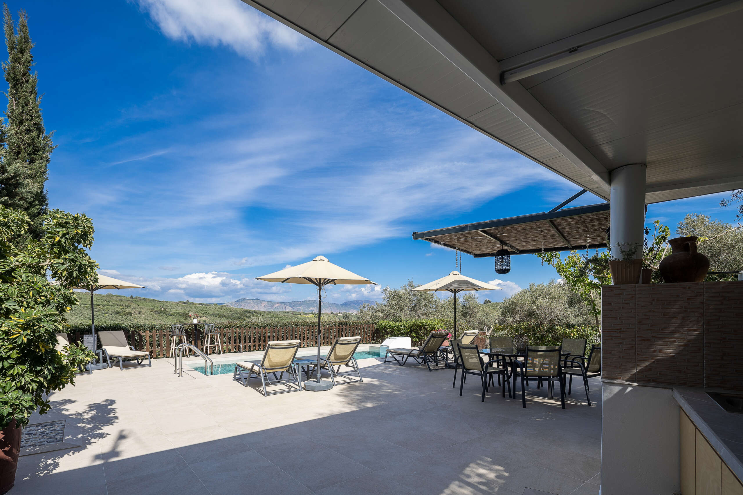 An ode to peace and natural beauty, MariAndry Villa is a private escape offering complete seclusion, perfect for those looking to reconnect with loved ones and nature alike. Designed for simple pleasures and unforgettable moments, whether it’s a long lunch beneath the pergola, a refreshing swim under the Cretan sun, or a twilight soak in the heated whirlpool. Located just 10 minutes from the beach, and 5 minutes from local shops and tavernas, MariAndry Villa invites you to surrender to a slower rhythm and fully immerse yourself in Crete’s countryside charm.