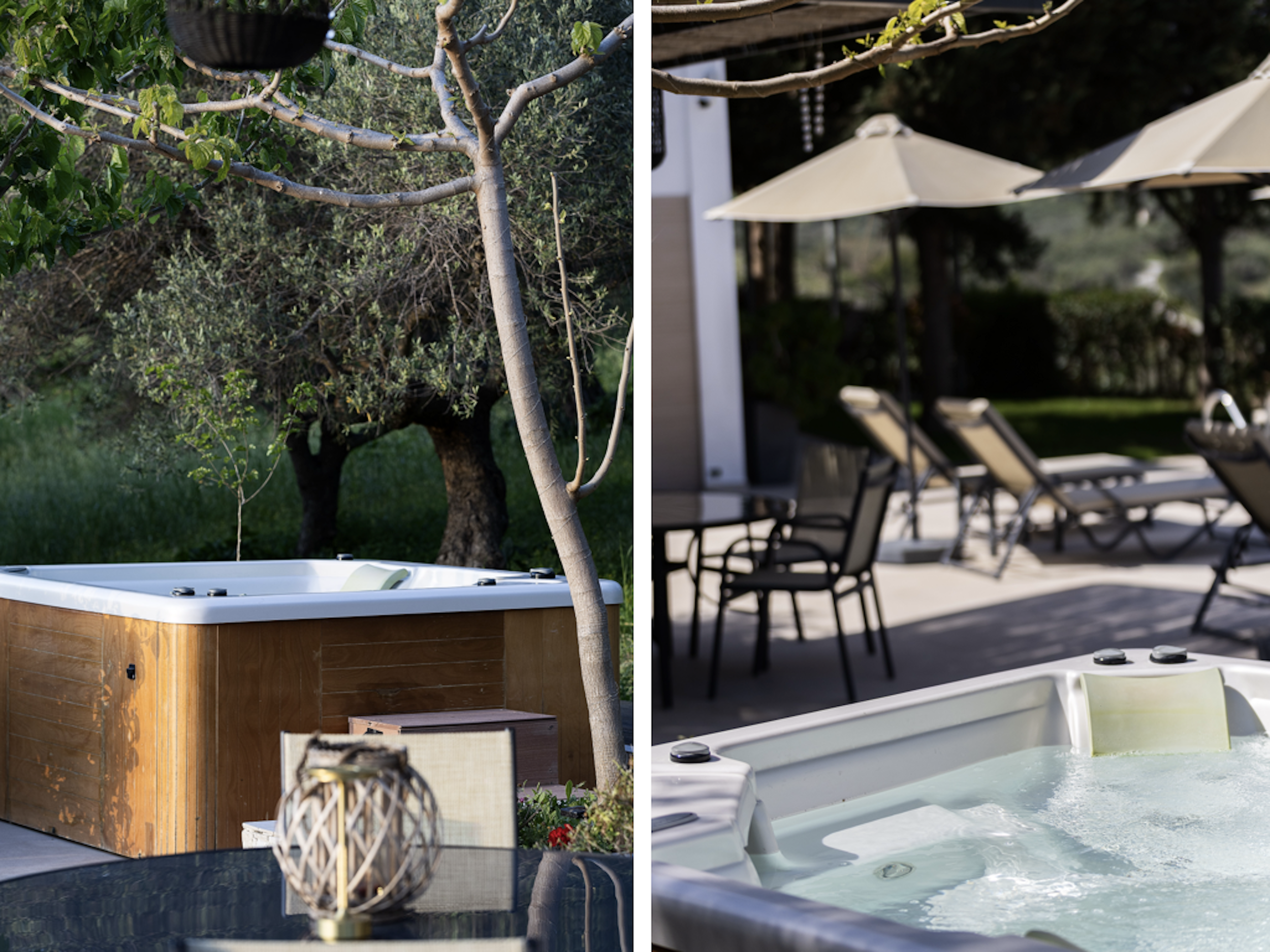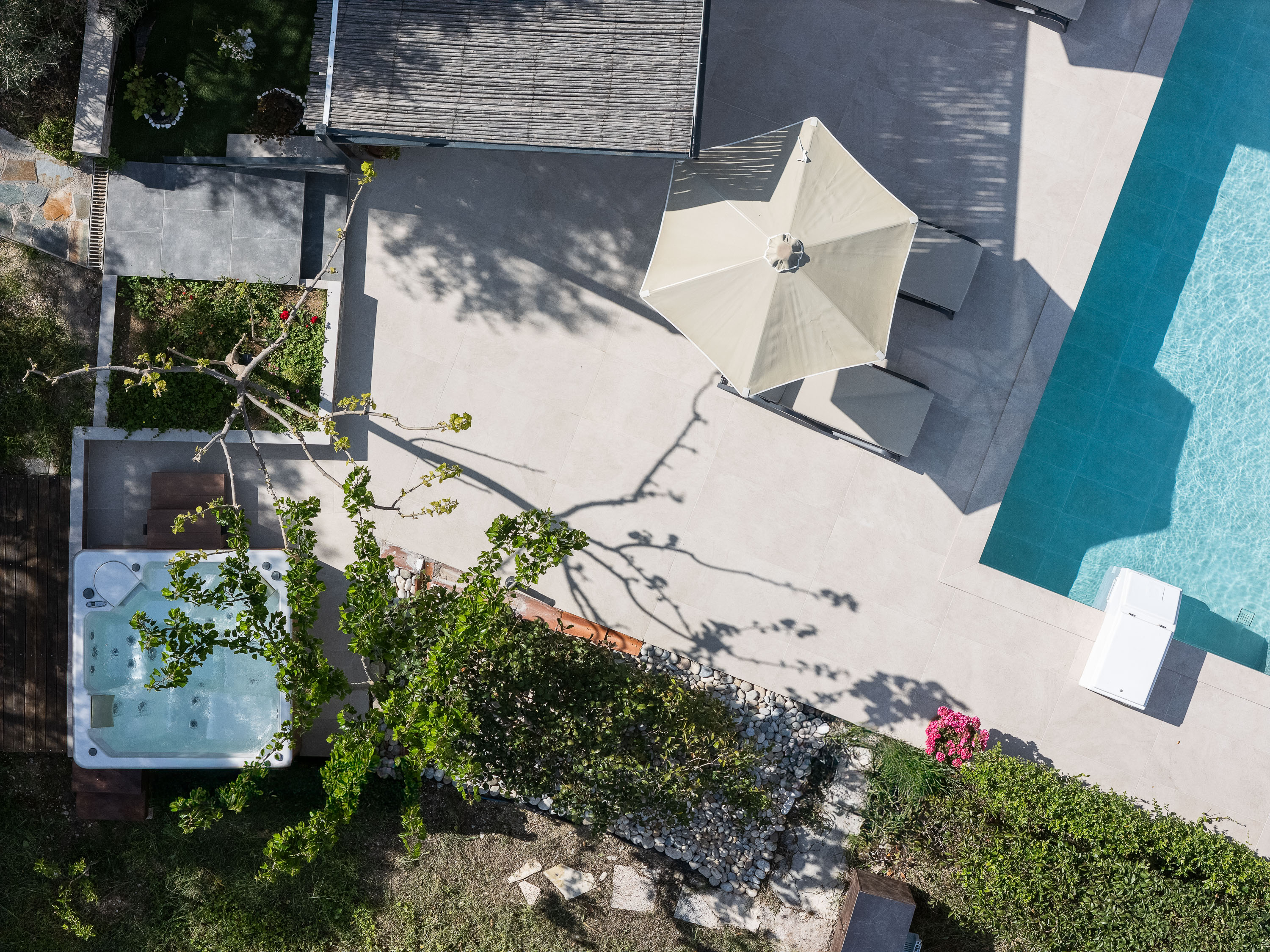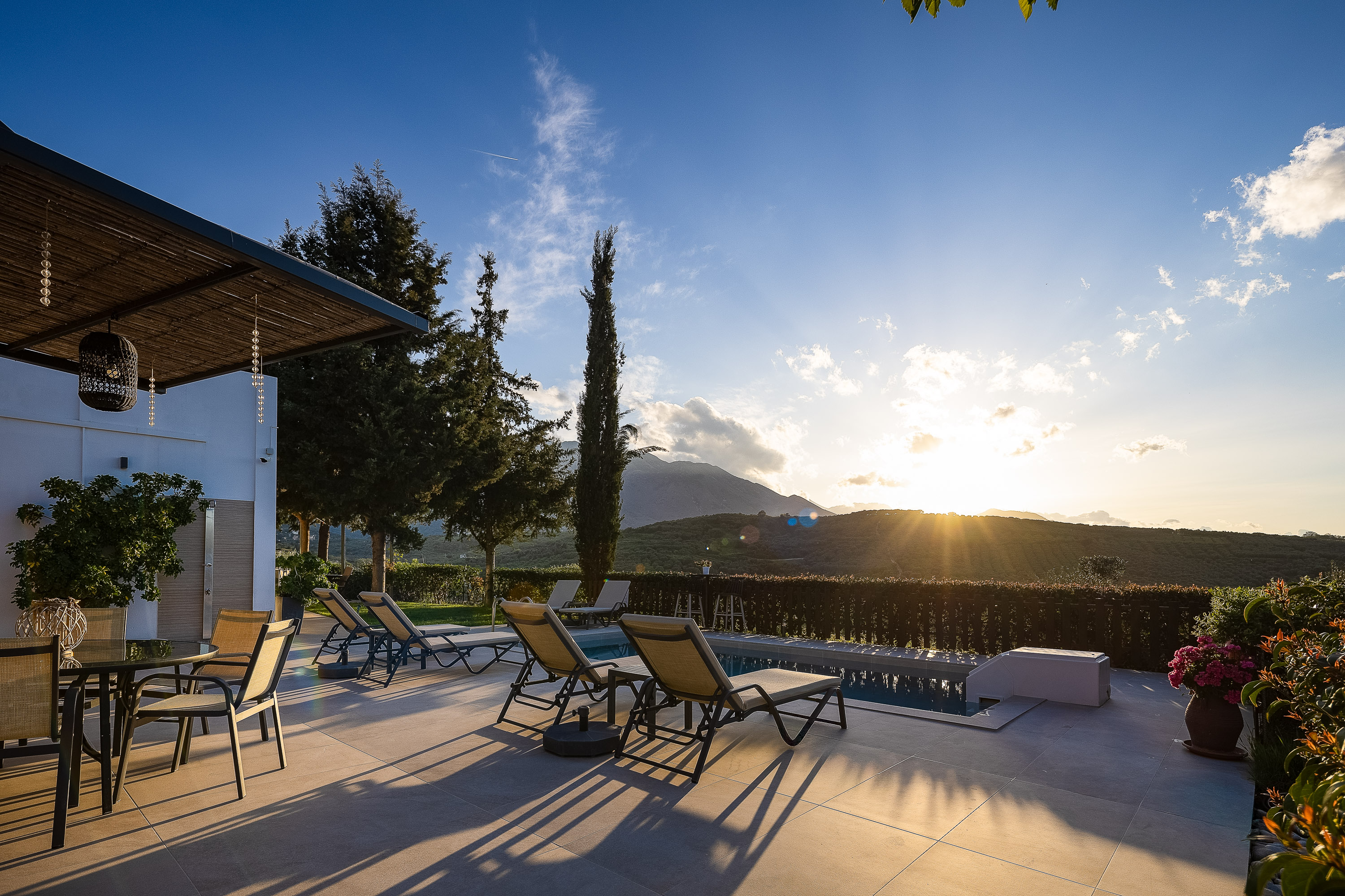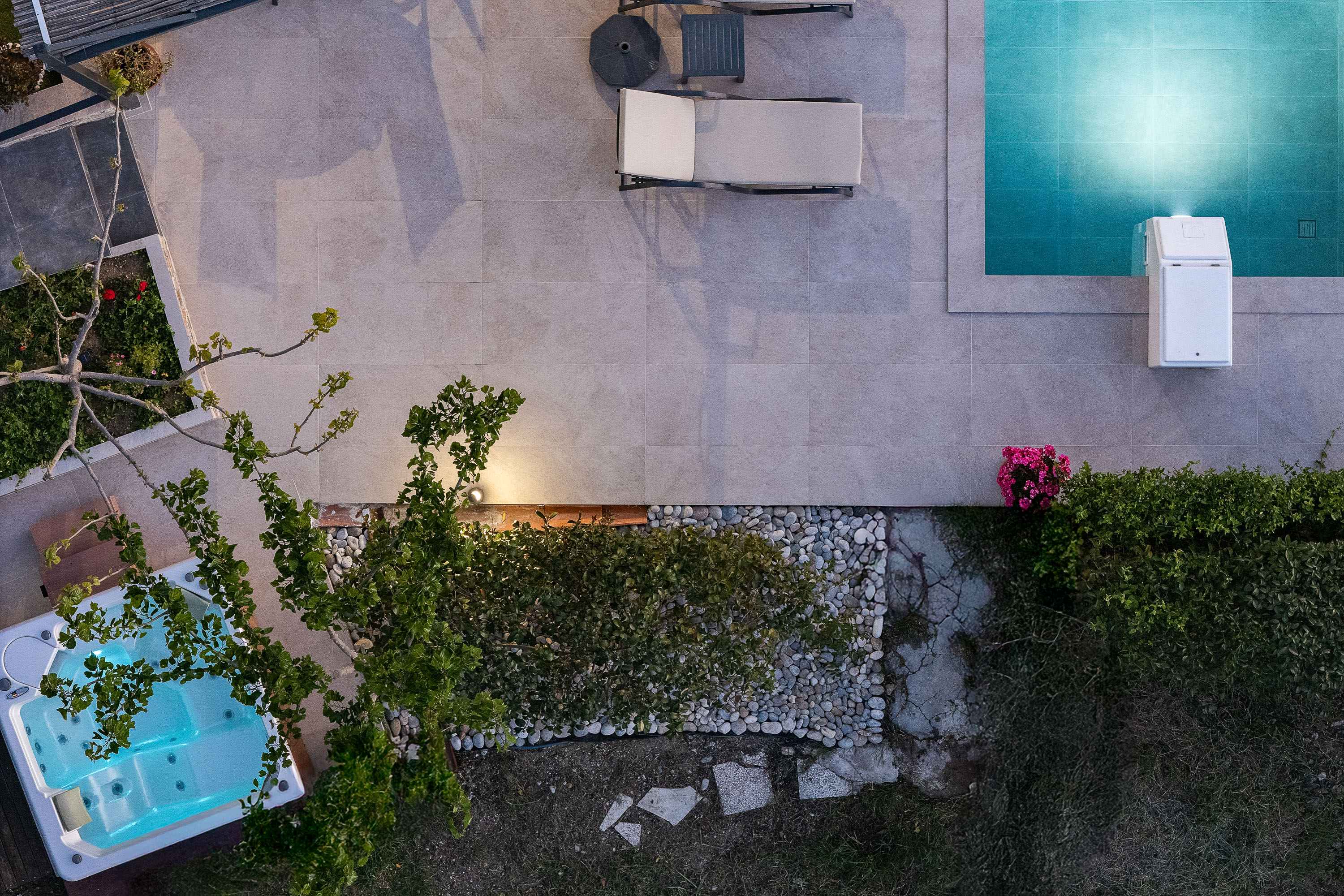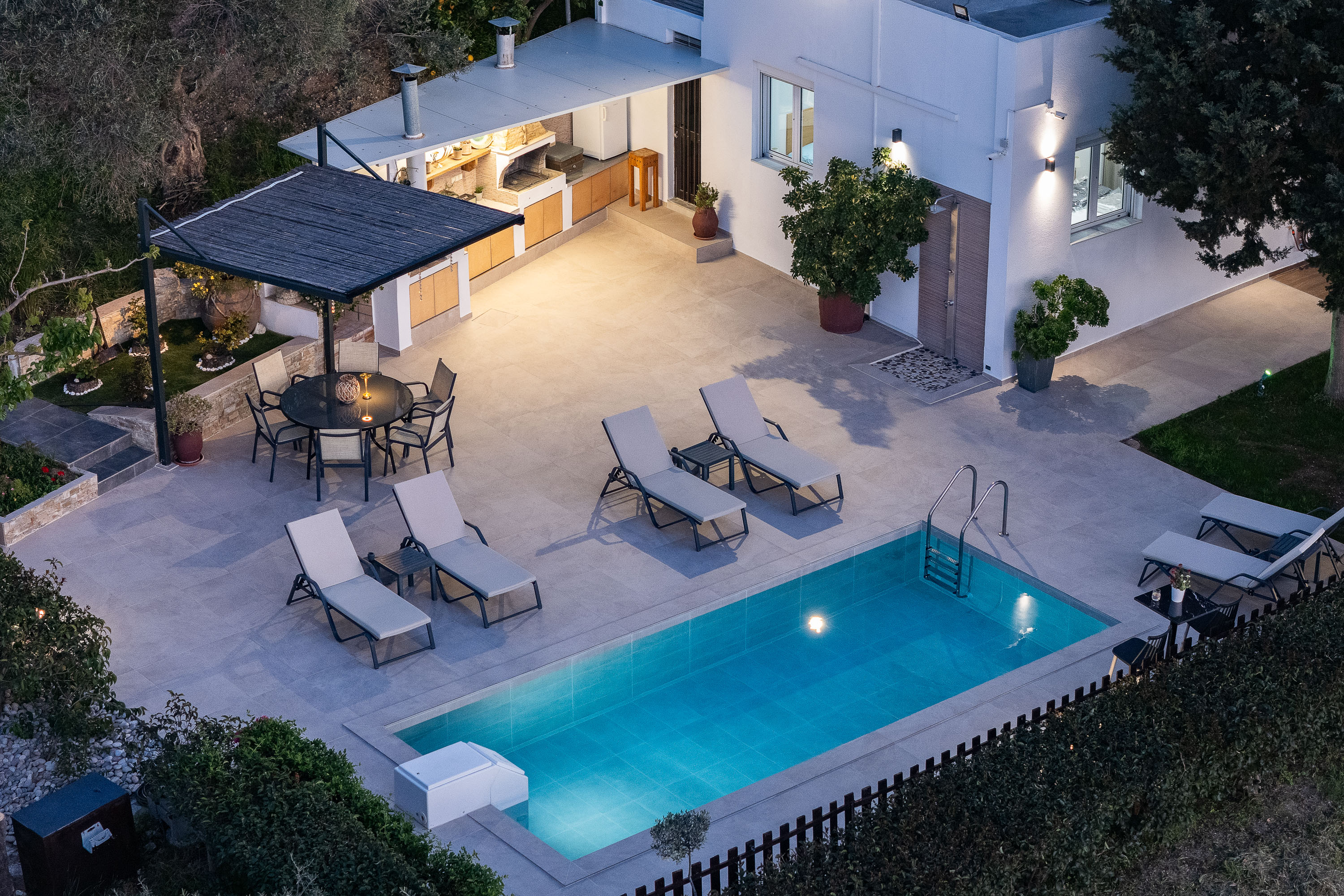 The playground all around will delight children. Find peace and serenity in the Heated Five-Seater Outdoor Spa Whirlpool. Bespoke outdoor settings & tableware. Bespoke outdoor settings & tableware. Evening pool mood lighting with breathtaking views. Explore the lush garden and enjoy a peaceful escape. Complimented with ideal BBQ settings. Create lasting memories by the inviting poolside retreat. Experience the villa's enchanting ambiance as it transforms under the night sky.